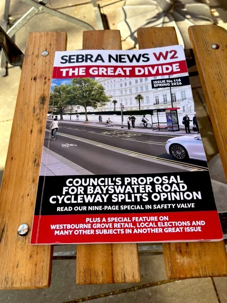 Then, in the middle of March, SEBRA magazine dropped on doorsteps. For those who don’t know, it’s a local publication covering three wards that is printed three times a year. (It stands for the South East Bayswater Residents Association). It’s really important to have a local publication like this, and it’s down to the tireless work of the editor John Zamit, who pulls everything together, and gives space to people to air a range of views. He told me that 1,500 copies are printed, and that they go to all their members, two MPS, and all 54 councillors.